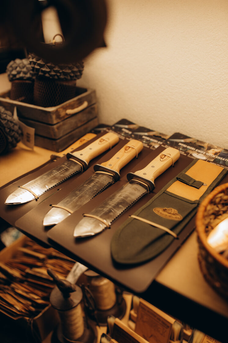 Pirktākais instruments ir Hori Hori nazis, kuru izmanto stādu dalīšanai, ravēšanai, apdobes malas griešanai. Nazim viena puse ir taisna un otra ar 'zāģīti', kas lieliski noder dažādiem darbiem. Naža asmenī ir iestrādāti centimetra mēri, kuru var izmantot, piemēram, sīpolpuķu stādīšanai, sēšanai.